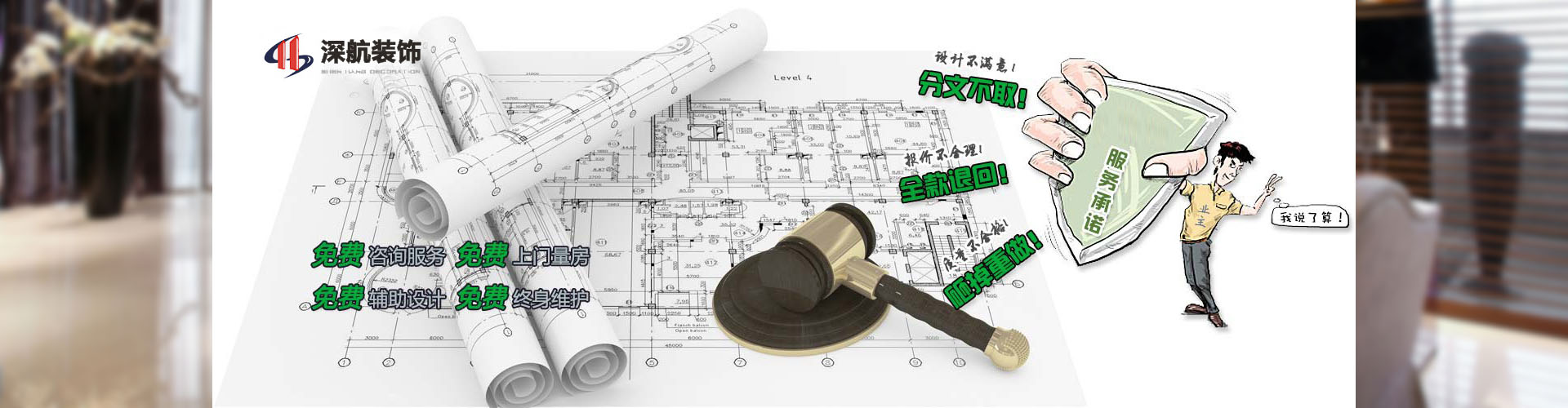 免費量房,免費設計,免費報價,多年專注公裝,大批量采購及成熟的施工管理系統,為您省錢不僅僅只有 35%